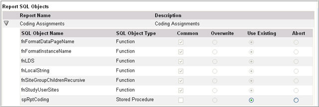 The Report SQL Objects Table displays the following information for every report included in the package: