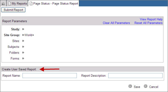 The system verifies for correct information and saves any changes that have been made. The user is routed back to the My Reports page where the newly saved report displays.