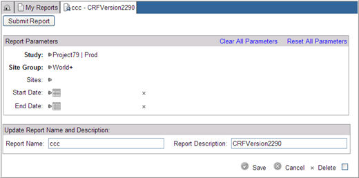 Click Clear All Parameters link in the Report Parameters section to clear any previously defined parameters.