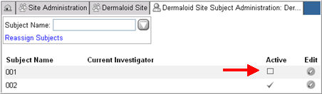 Note: Subjects are added in the EDC Module. Subjects can be inactivated or re-activated only from the Site Administration module.