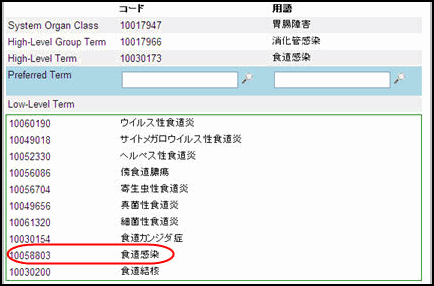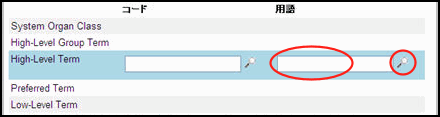 画面が更新され、以前のリストが表示されます。例えば、より高いレベルの用語をクリックして別の選択をすると、システムは、それ以外のすべてのレベルの記録をクリアし、上位レベルの情報を入力していきます。それぞれの検索で上位語が1つしか見つからなかった場合、システムはこれを入力したうえで、基本語である、その一階層下のレベルで有効なオプションのリストを表示します。