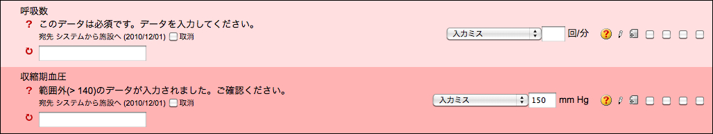 クエリは、問合せ文と回答を入力するテキストボックス(オプション)で構成されます。クエリは、フォームページにピンクまたは赤で、クエリメッセージとともに表示され、データ入力フィールドが編集できる状態で表示されます。