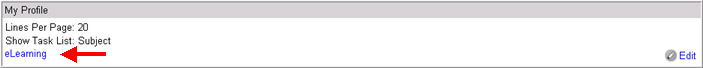 The My Profile page displays the eLearning link in the My Profile section.