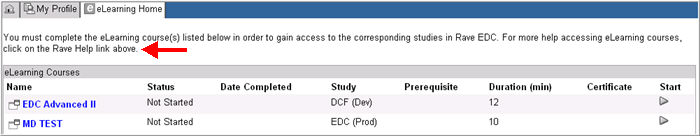 Note:eLearning courses that are created and assigned to users in iMedidata will not show in Rave. Externally authenticated users must complete all eLearning courses assigned to them in iMedidata.