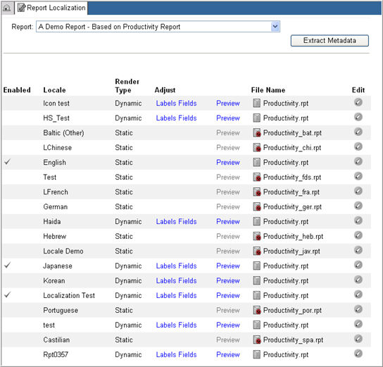 Static Reports - Report localization is performed ahead of time by creating a locale-specific version of the report.