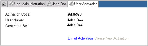 If you provided a fully qualified and valid email address in the New User section, an Email Activation link will display in the User Activation page.