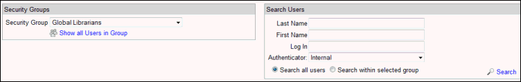 To search for a specific user, select a Security Group from the drop down list in the Security Groups section to which you want add a user.